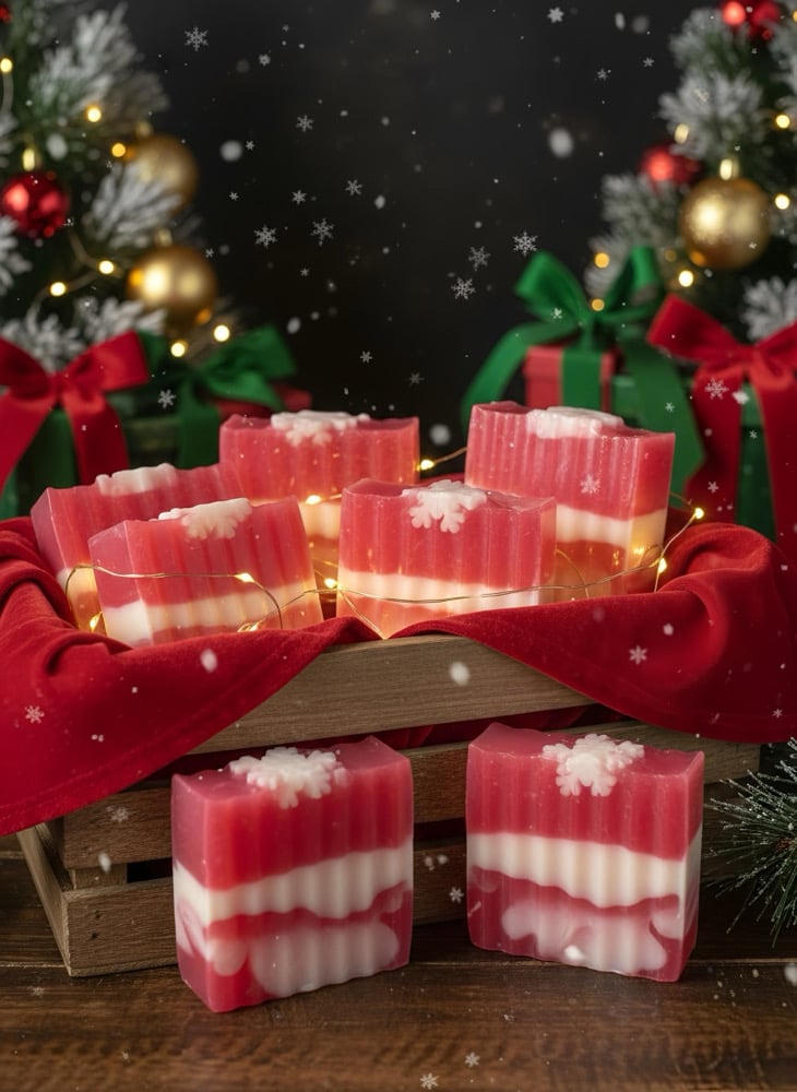 Bring the festive spirit to your daily routine with our Candy Cane Swirl Soap — a handcrafted bar that blends holiday cheer with nourishing skin care.